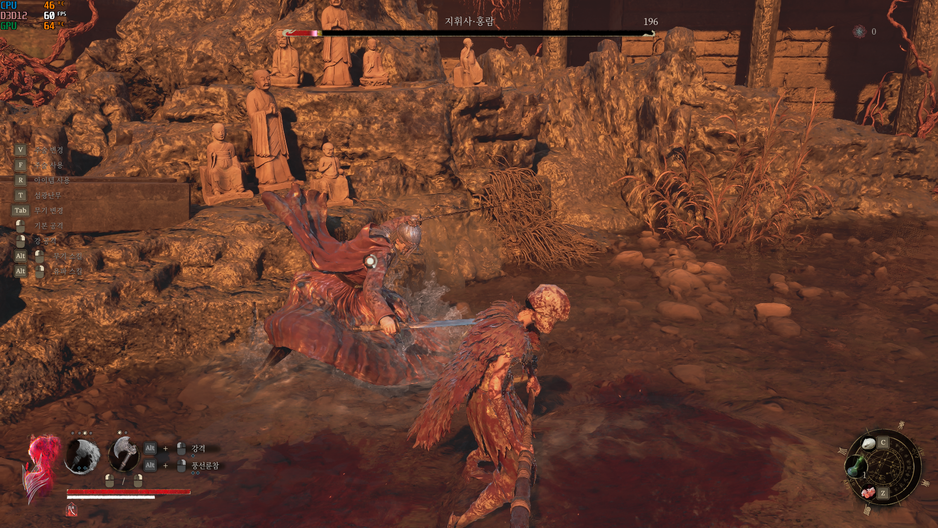 이것을 반복하다보면, 어느새 홍람의 피가 다 깎여있을 것이다